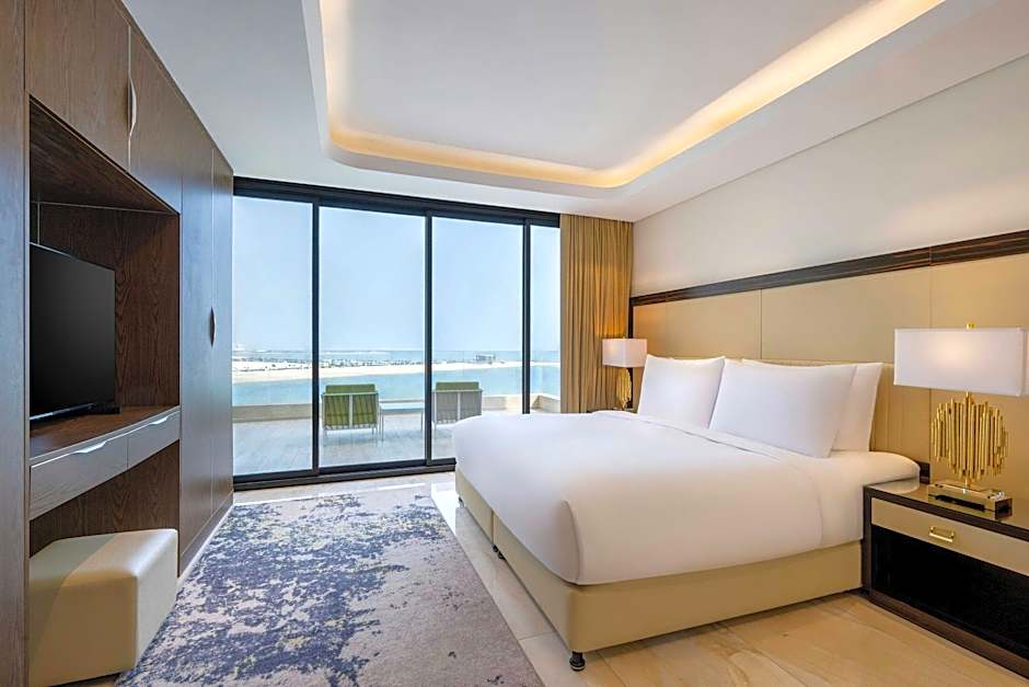 The suite's kitchenette, which features a refrigerator and a microwave, is available for cooking and storing food. The spacious suite offers air conditioning, a tea and coffee maker, a balcony with sea views as well as a private bathroom featuring a bath. The unit offers 1 bed.